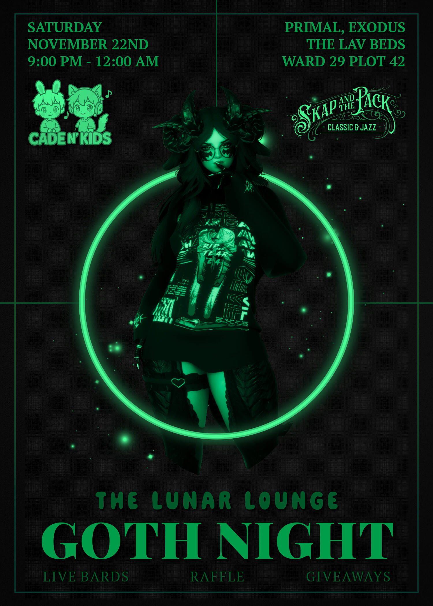 Occupation: PR Manager/Performer/Fortune TellerBio: Endewyn is a mystical and unpredictable chaotic Xaela Au Ra who came from rags and dirt. One day not so long ago she crawled out of her witch hovel in the Lavender Beds to the sound of enchanting music that led her to New Gridania to the beautiful sight of eight Miqo’te playing a ballad with “strings” and “doots”. Upon this fateful day Endewyn gave up her life of being a “Warrior of Light” and began anew following the siren songs from bards across the land. She adopted the life of a roadie working from the shadows to rally the crowds and discovered “clubs” where people go for “fun”. Fate weaved in mysterious ways and Endewyn came across a “goth peddler” by the name of Lunala who she took under her wing and fed and clothed. This Lunala reminded Endewyn of where she came from and wanted to make this one’s dreams come true. The rest of the story is written in the stars and Lunala is now thee richest lizzer in all of Eorzea with a silver spoon and venue over her head with thee most talented band of undying followers that will kill at her command…I mean give the best customer service you have ever seen!